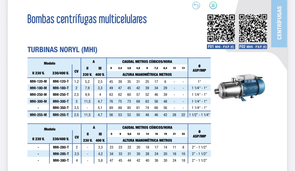 • Modelos MHX/INOX MH: Construida en acero inoxidable AISI 304 o AISI 316 para aplicaciones más exigentes y ambientes corrosivos.