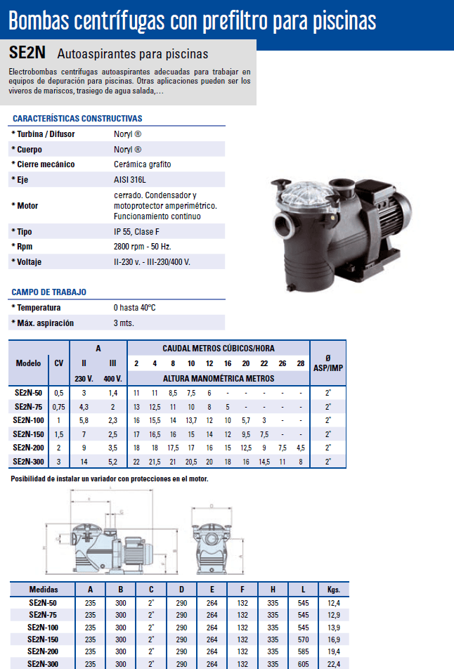 Bombas autoaspirantes para piscinas monofásicas y trifásicas