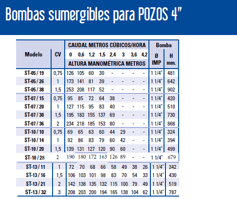 • Turbinas / Difusores: Noryl® / AISI 304
