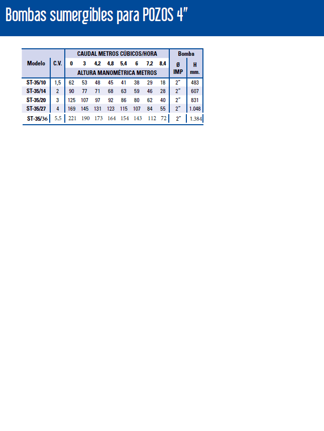 • Revoluciones: 2800 rpm – 50 Hz